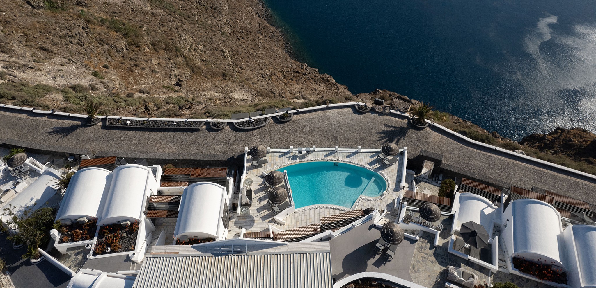 While the hotel offers a secluded retreat, its location in Imerovigli provides easy access to the island’s key attractions. Scenic walking paths, traditional villages, and cultural landmarks are within reach, allowing guests to explore Santorini while returning each day to a quiet and refined sanctuary.
