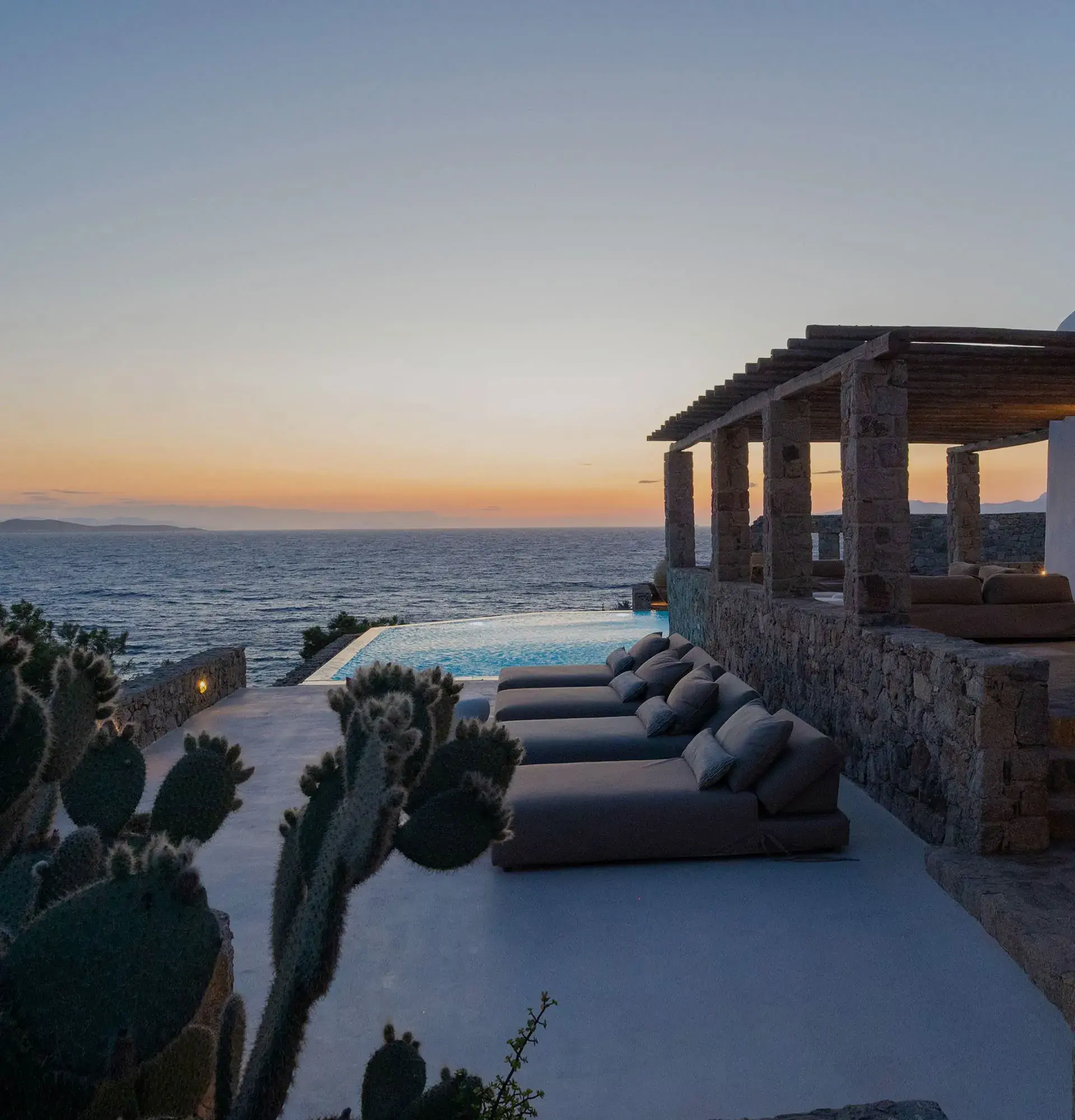 Mykonos delivers a different expression of the same philosophy. Here, Topos Exclusive focuses on spacious private villas with pools, designed for both relaxation and social living. The layouts support long days under the sun, evenings by the pool, and effortless transitions between calm seclusion and the island’s renowned energy. These villas are intentionally flexible, suitable for couples, families, or groups who want autonomy without sacrificing comfort.