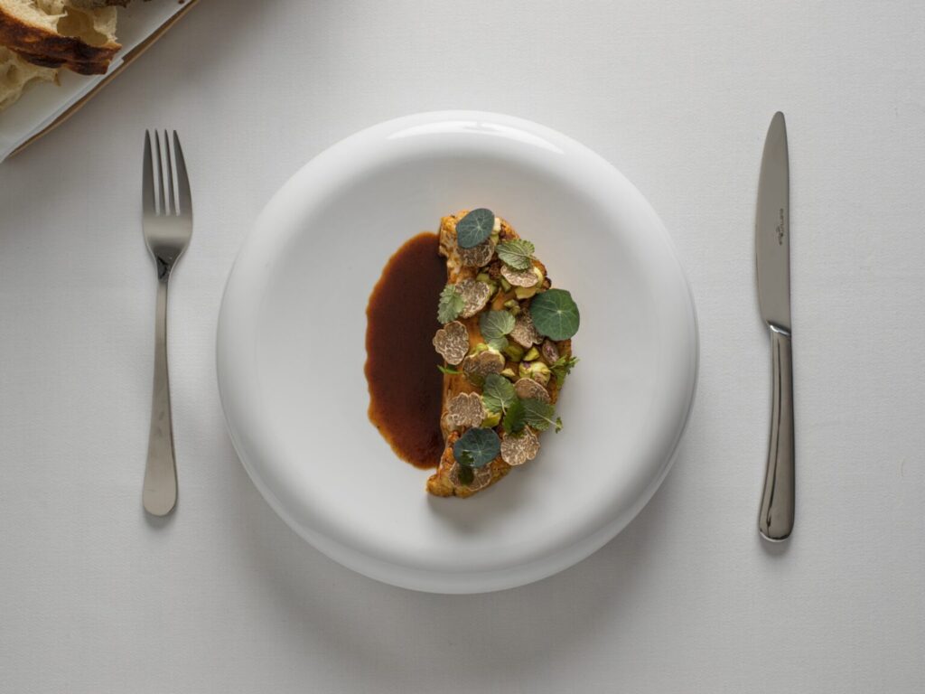 Suspended above Santorini’s dramatic volcanic basin, this intimate terrace offers understated elegance matched by panoramic views stretching from Thirasia to Oia. Dishes, created by Chef Adam Kodovas, reflect a Mediterranean sophistication, showcasing ingredients like smoked eel served alongside cod and foie gras or bonito subtly seasoned with vanilla and chili. With tasting menus of nine or 11 dishes, and a vegetarian menu, the food is heightened by arresting sea and sky views.