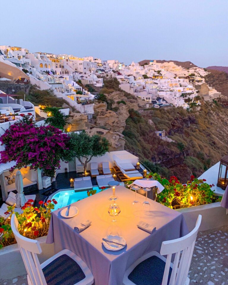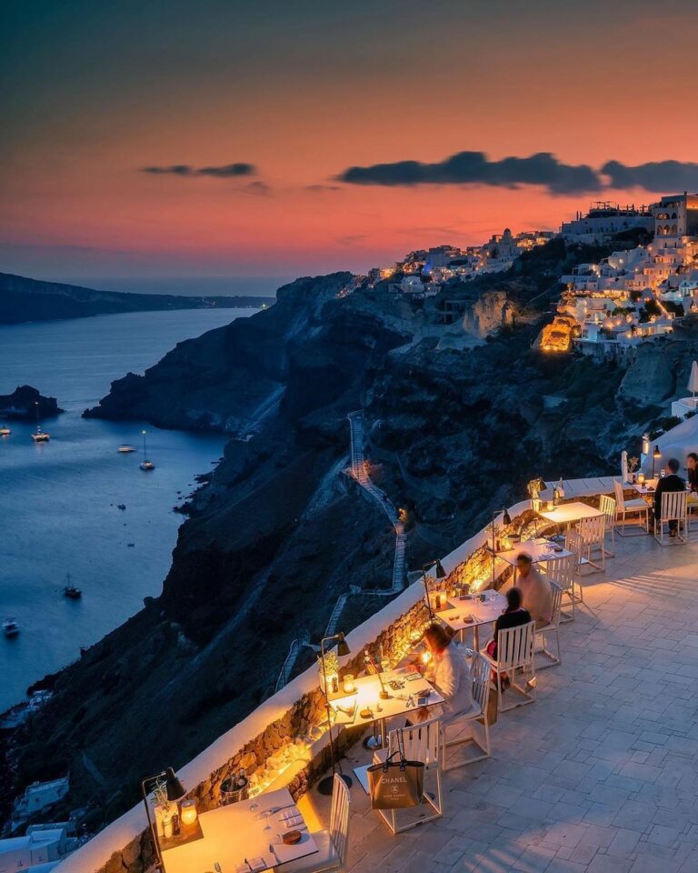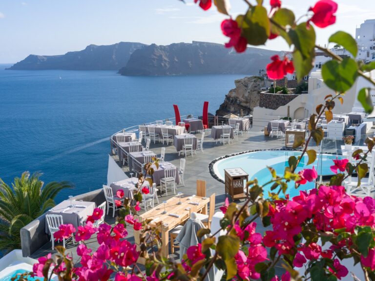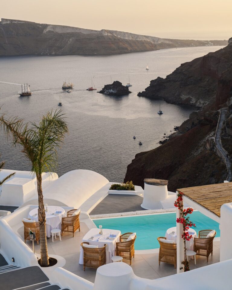 Set along Oia’s volcanic cliffs, tables encircle a luminous pool overlooking the hypnotic vista of the Caldera. The sophisticated yet relaxed atmosphere enhances inventive Greek cuisine created by esteemed chef Tasos Stefatos, whose dishes honor island ingredients prepared with playful creativity. Expect plates such as black pork with green apple and cauliflower or the creamy Green Kakavia seafood soup, plenty of vegetarian and gluten-free options, accompanied by expert wine selections, attentive service, and an atmosphere of quiet luxury.