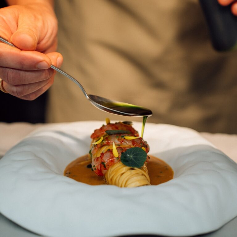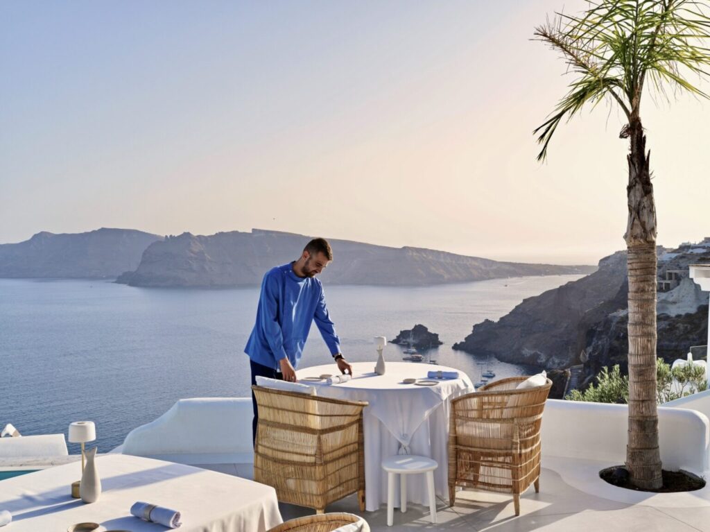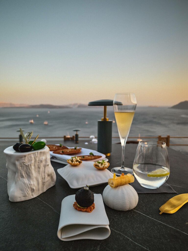 In restaurants carved into the caldera’s edge, local ingredients like fava, white eggplant and the island’s prized cherry tomatoes are transformed into precise, contemporary expressions of Cycladic cuisine. Beyond the expected sunset views and infinity pools, it’s in these kitchens where the island’s true luxury unfolds: a gastronomy shaped by volcanic soil, sea winds, and generations of local wisdom. Here, the dining experience is as much about the dramatic setting as it is about the food – though both aim for the sublime, and often achieve it through a delicate balance of innovation and reverence for the past.