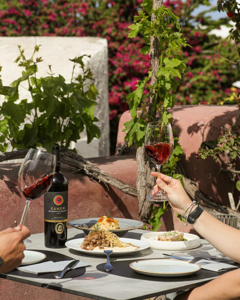 In Exo Gonia’s flower-filled courtyard, surrounded by vineyards traditionally coiled against Santorini’s winds, guests experience the island’s wine heritage firsthand. Meals feature flavorful dishes like pork kavourmas or creamy fava, paired expertly with wines produced onsite at the Artemis Karamolegos Winery. Authentic charm and the vineyard tours available before dining further highlight the restaurant’s sincere connection to local tradition and volcanic terroir.