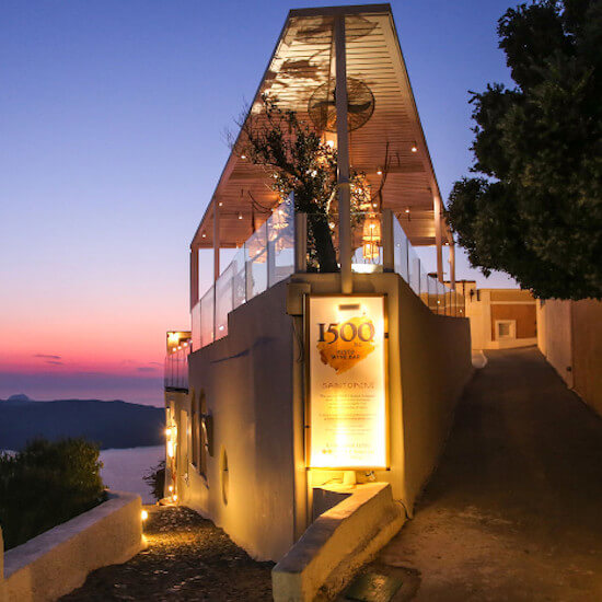 The restaurant 1500 B.C. is located in the historic Fira, overlooking the Aegean Sea at an altitude of 250m above sea. It looks directly at the golden sunset every day and creates images that remain engraved in your memory. 1500 B.C. symbolizes moments through the passing of the years… and such moments are offered to you from sunrise to sunset!